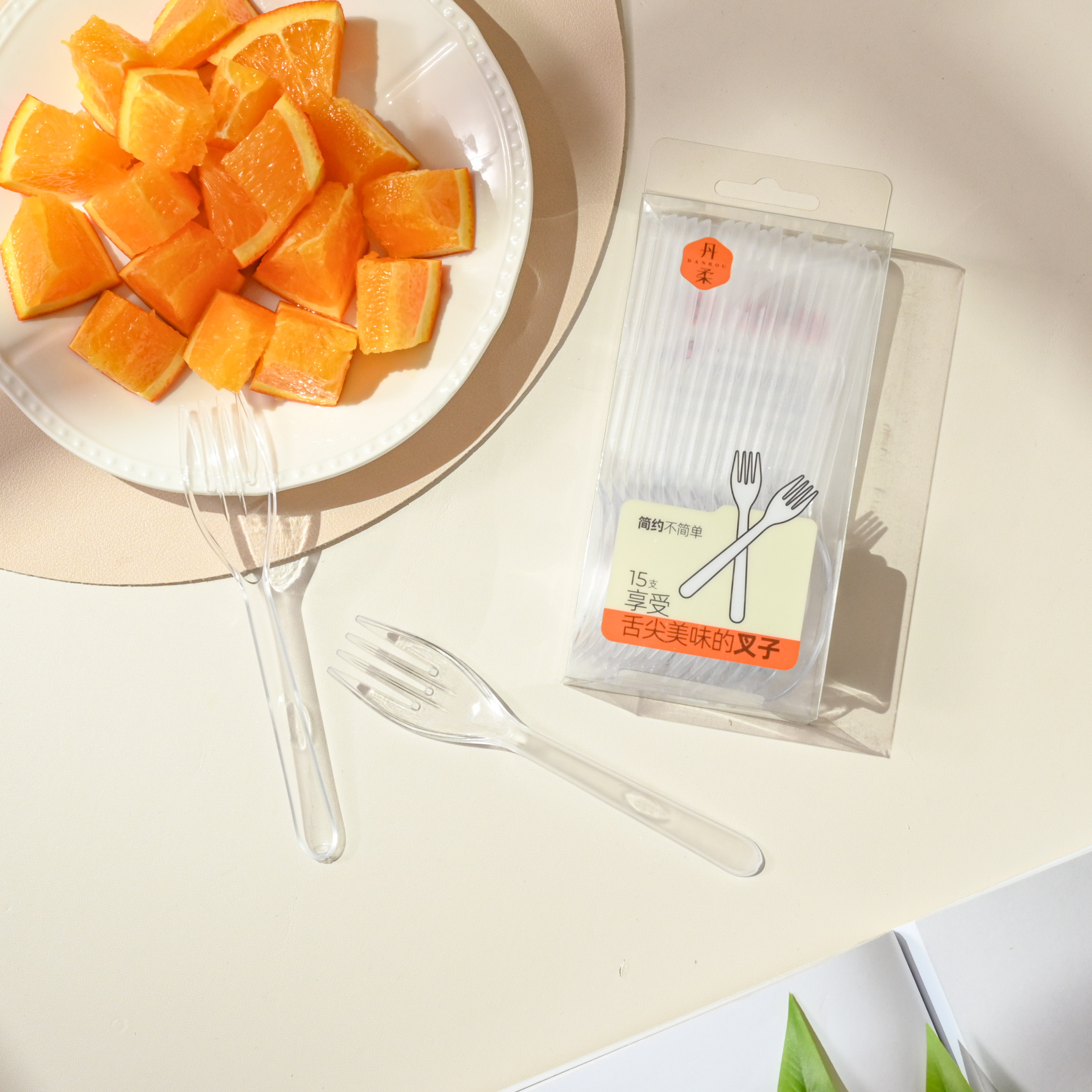 丹柔精装中号一次性塑料叉勺(15支) 1883